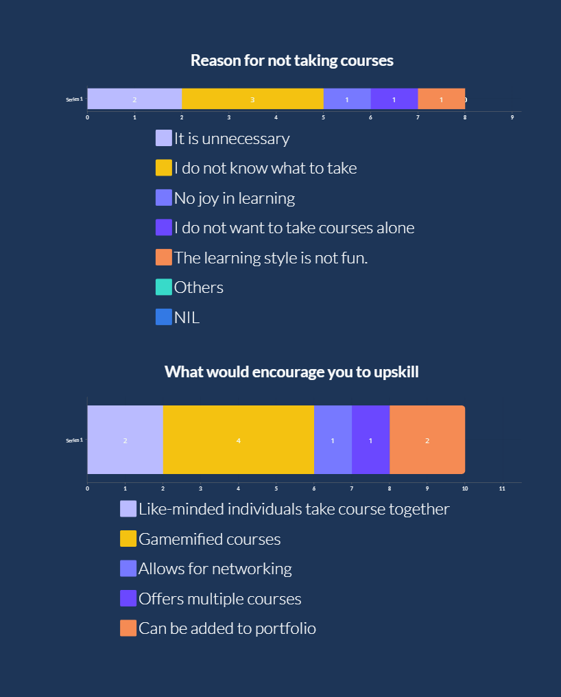 Level Me Up is an app that encourages working adults to pick up a new trade skill such as visual design , programming and many more. This introduces a fun and interactive way to encourage them to learn new skills to constantly upskill themselves. Game like features have been integrated to make learning more engaging.