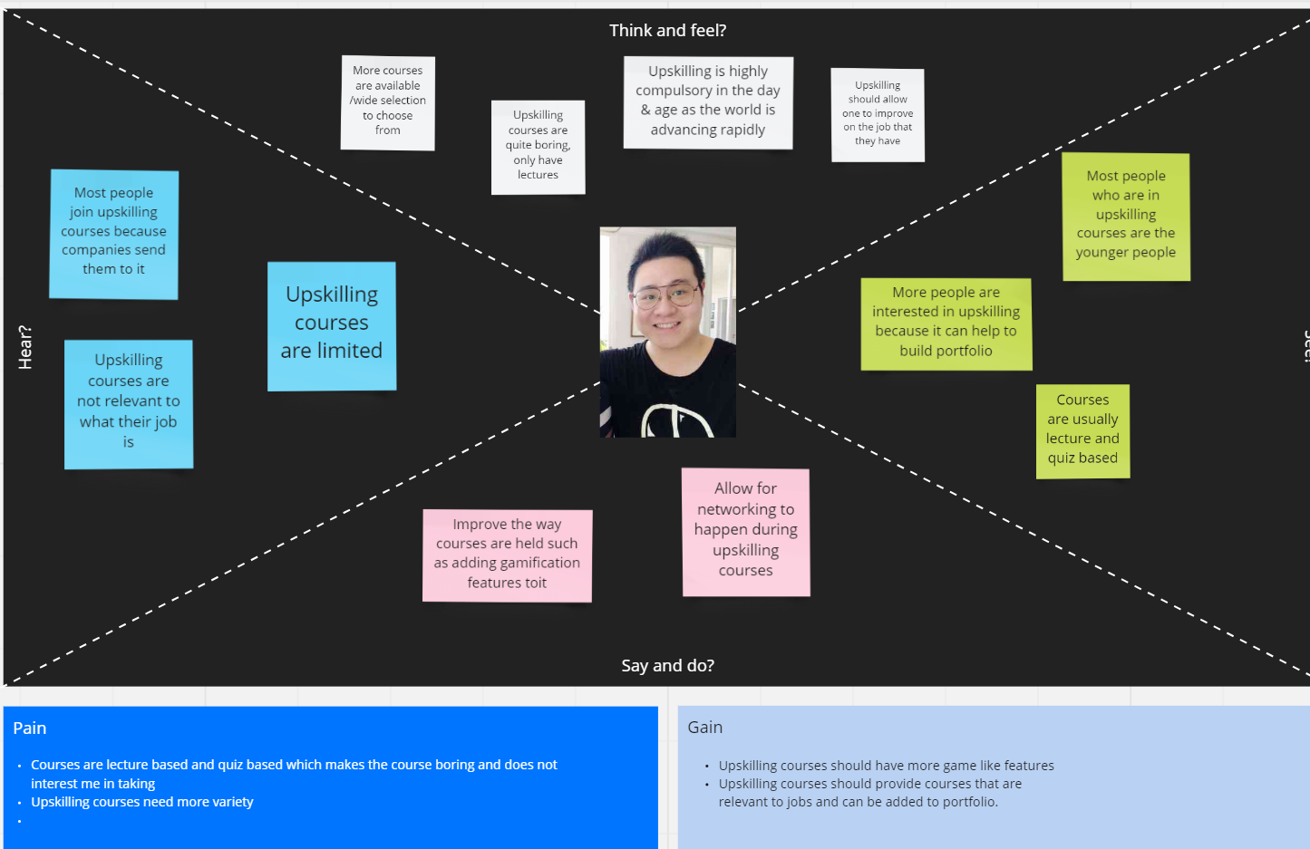 As the world is constantly evolving and people are required to constantly upskill themselves to keep up with the latest advances, I thought of how I could make the process of learning a new trade skill more interactive instead of the conventional way of learning by listening to lectures and doing mini quiz. My goal is to encourage more working adults to upskill themselves and feel motivated to learn more things even though they are no longer schooling and are working.